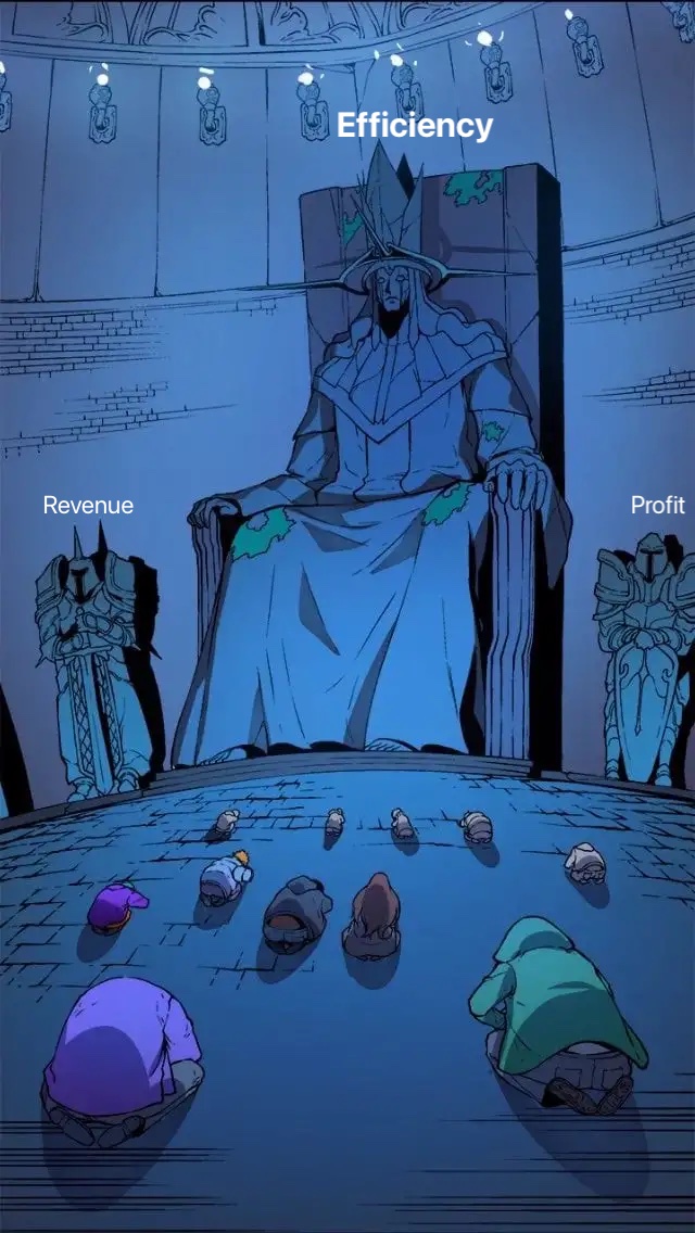 Efficiency doesn't sit beside revenue and profit as a peer concept. Efficiency is the monarch. Revenue and profit result from the king's governance; they depend on how effectively you eliminate waste, how accurately you measure work, and how you deploy resources.